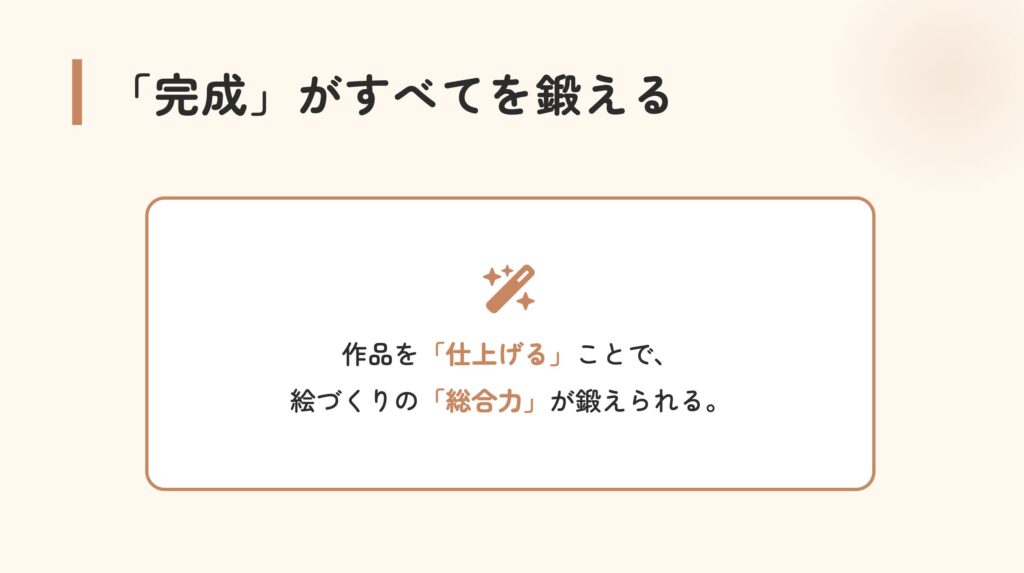 作品を完成させるという体験をなるべくたくさんした方がいい