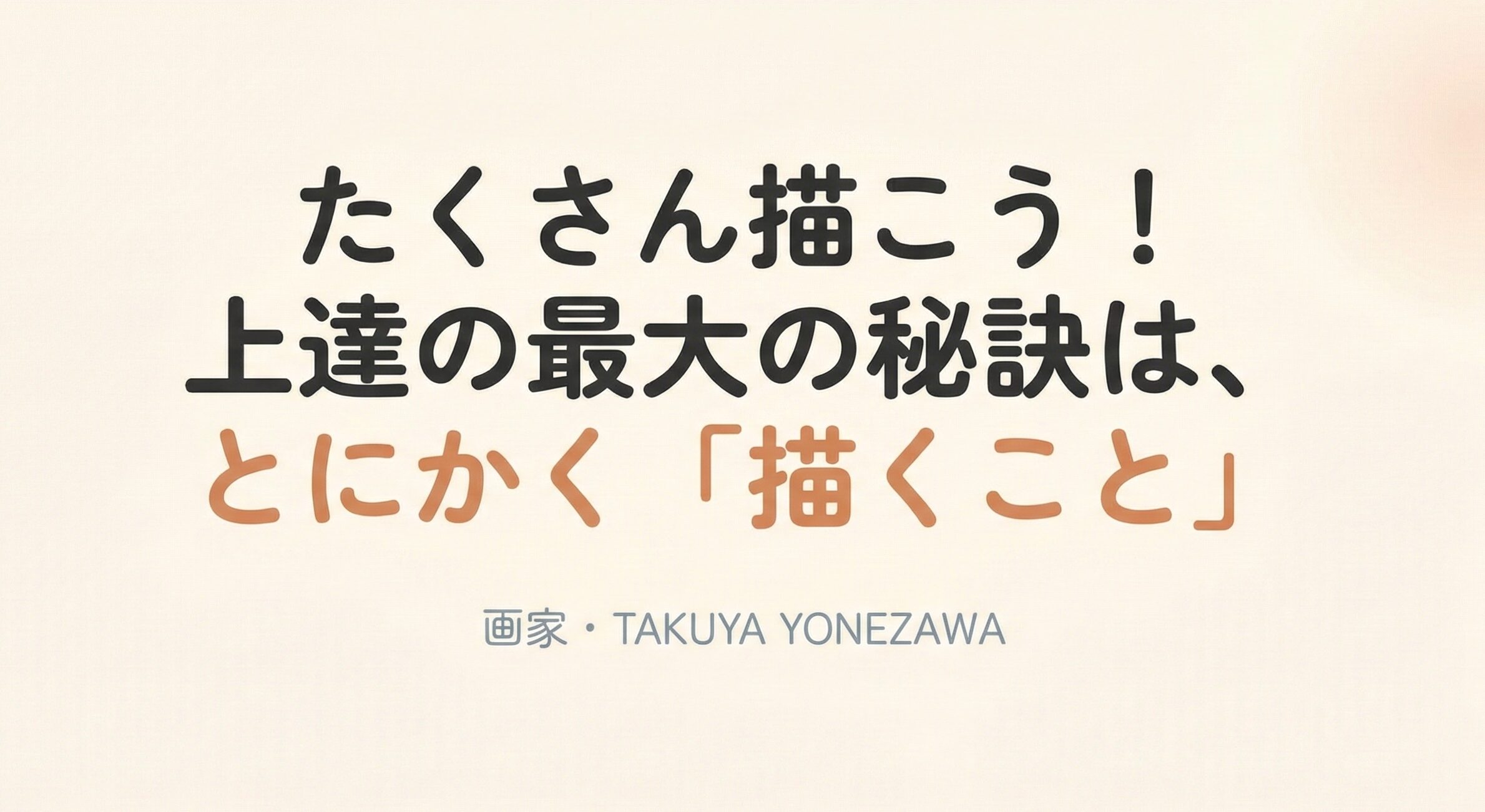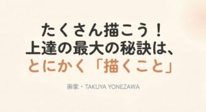 こんにちは!画家のTAKUYA YONEZAWAです。今日は絵がうまくなりたい!将来的に絵を仕事にしたいと思っている方に向けて「上達の最大の秘訣は、とにかく「描くこと」」というテーマでお話をしていきたいと思います。