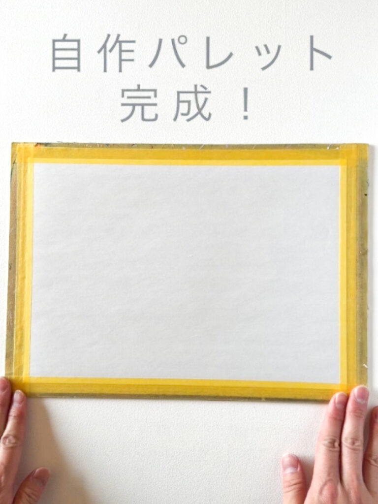 サイズはA4よりも少し大きめのものを用意しましょう。ぼくは紙パレットを使い切った後に残る厚紙を活用しています。厚紙でなくても、プラスチックの板などでもいいと思います。
