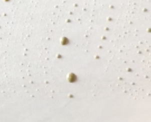 シリコンペーパーは水をはじく力が市販のパレットよりも強いので、水彩絵具や、水を多めに溶いた絵具で色を作る場合にはパレットの上で弾いてしまったり、水滴のようになってしまうことがあります。