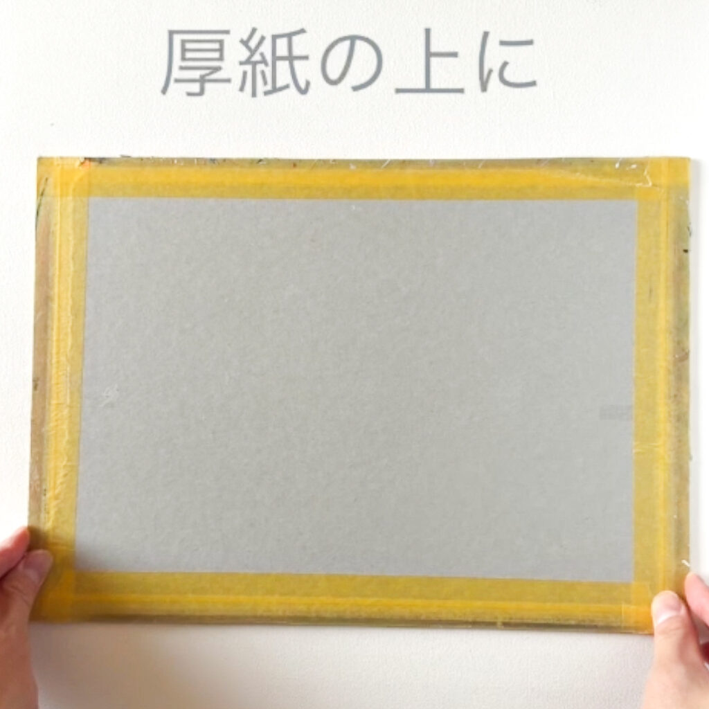 厚紙に、シリコンペーパーをマスキングテープで貼る