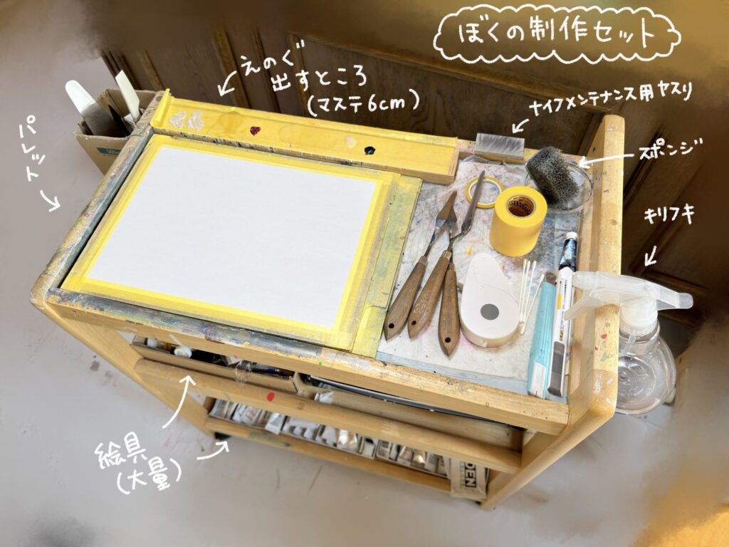 何よりも、これを作ったことで、パレットがいっぱいになったら洗って再利用する、今の制作スタイルが確立できました。